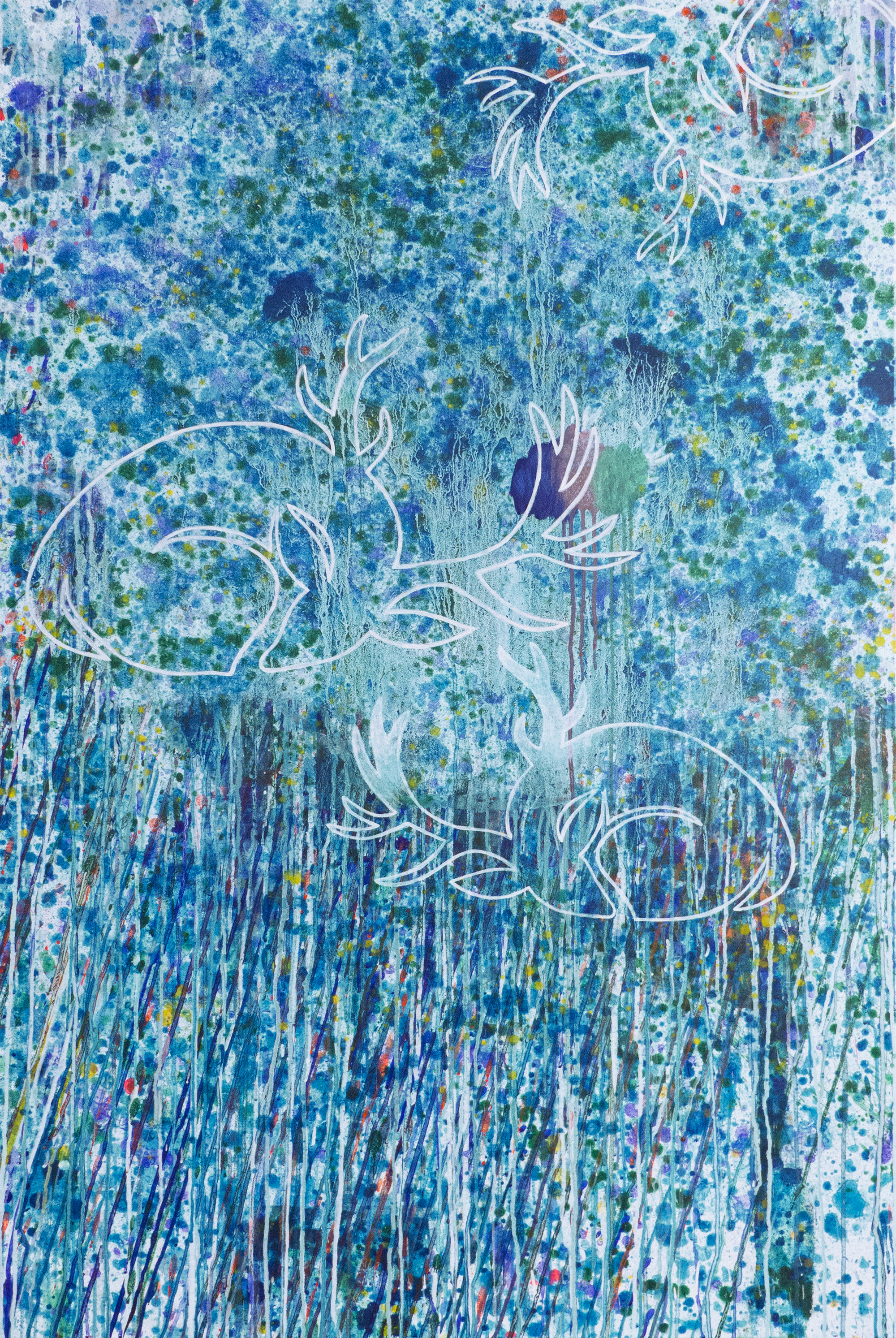 A la recherche de ces instants fugaces où j’appartiens au monde. Chaque toile est un Eden mouvant, un pas avant l’abîme.