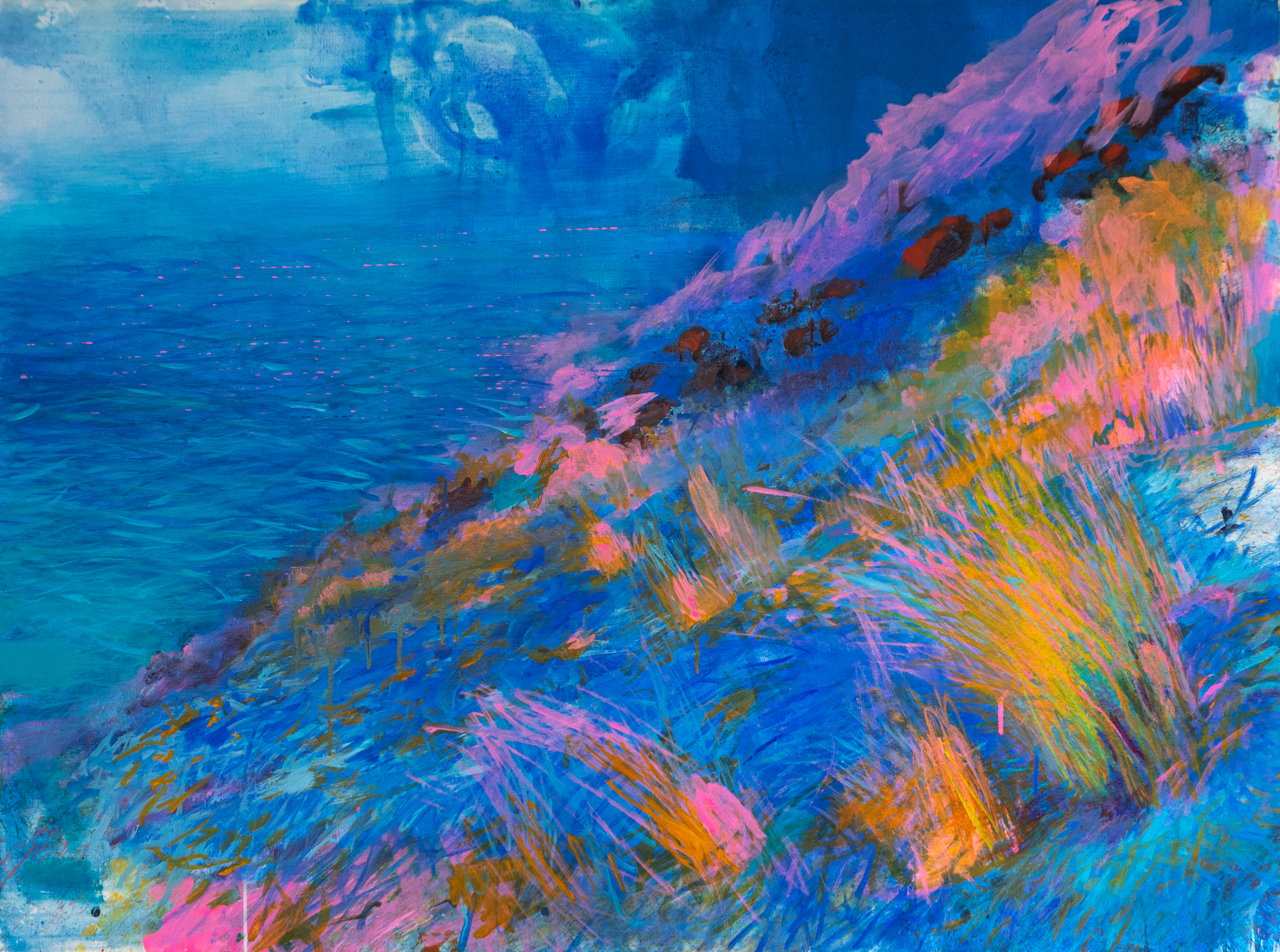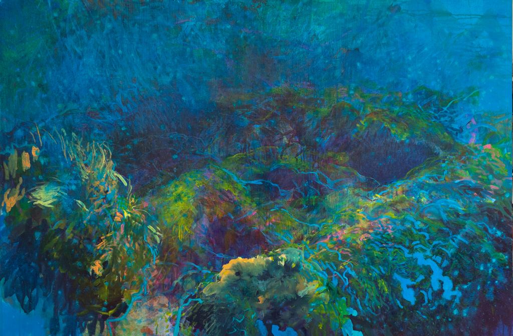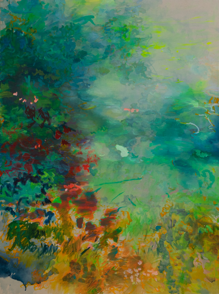 Je m’intéresse au paysage, en tant qu’expérience immersive dans un espace mouvant et fluctuant où l’air, la lumière, les odeurs, les sons nous traversent, où nos perceptions nous relient aux éléments et aux êtres qui y vivent. Je peins des paysages mouvementés, qui, par le travail dans la profondeur du tableau, invitent le regard à y plonger.